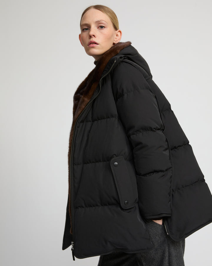 Absolument. Notre collection comprend des doudounes noires sophistiquées dans plusieurs silhouettes, des modèles "A-line" avec col en renard aux parkas techniques doublées en vison, alliant élégance et chaleur.