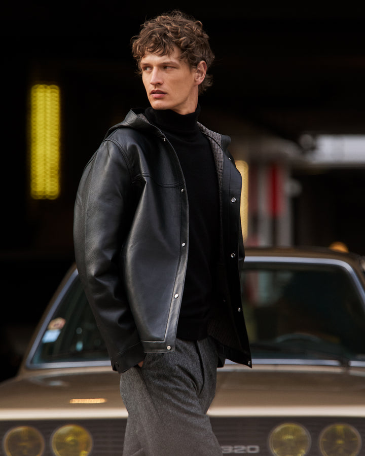 The collection also features distinctive hooded designs crafted in supple lambskin, merging urban refinement with practical luxury—perfect for the modern gentleman seeking both style and function.