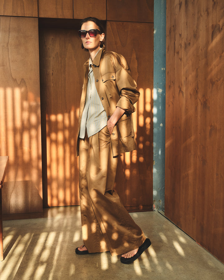 The collection introduces revisited essentials: clean-cut suits, modernized safari jackets, and flowing ensembles with a dressy touch. A nonchalant elegance is present, made