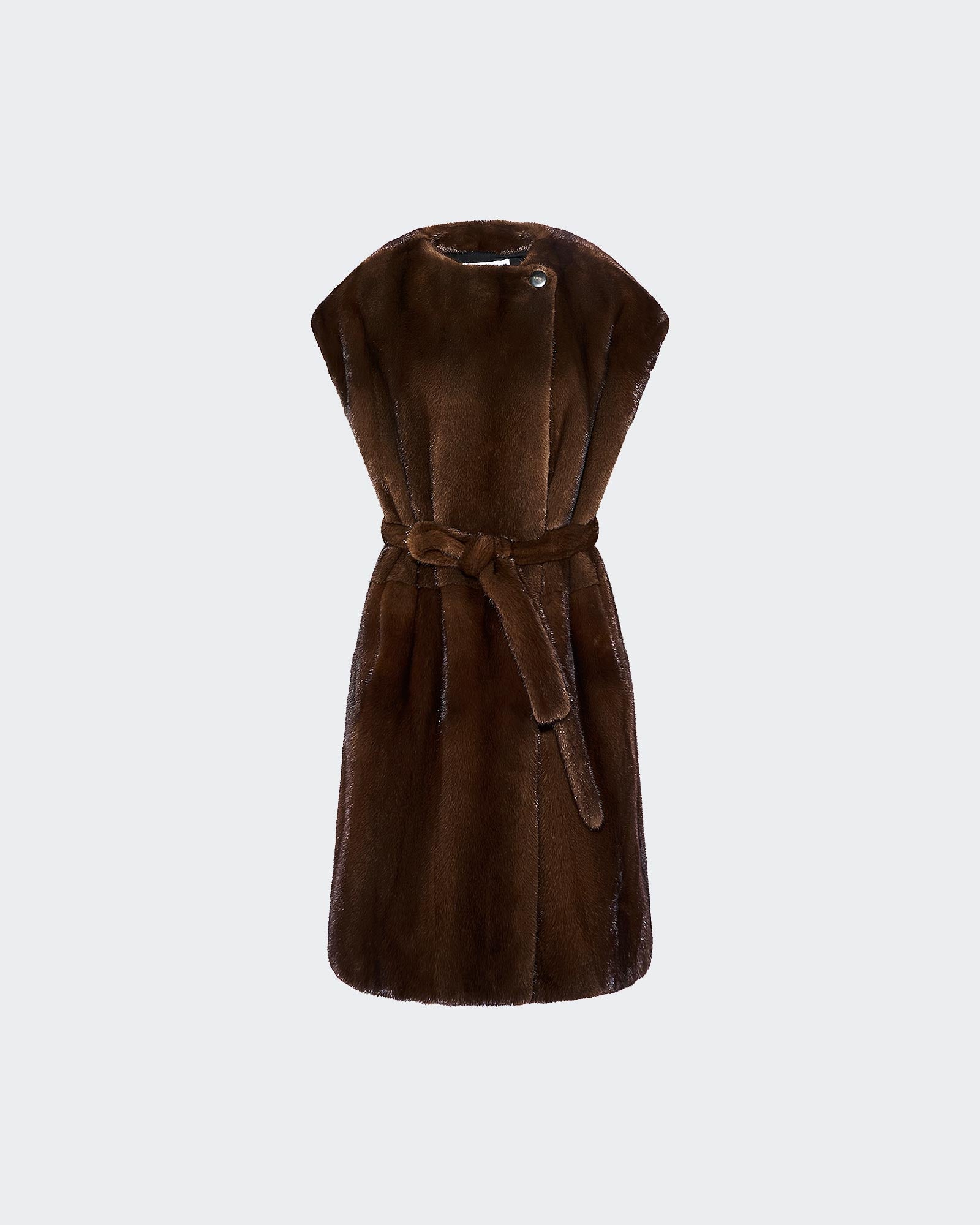 Long-haired mink fur belted cape