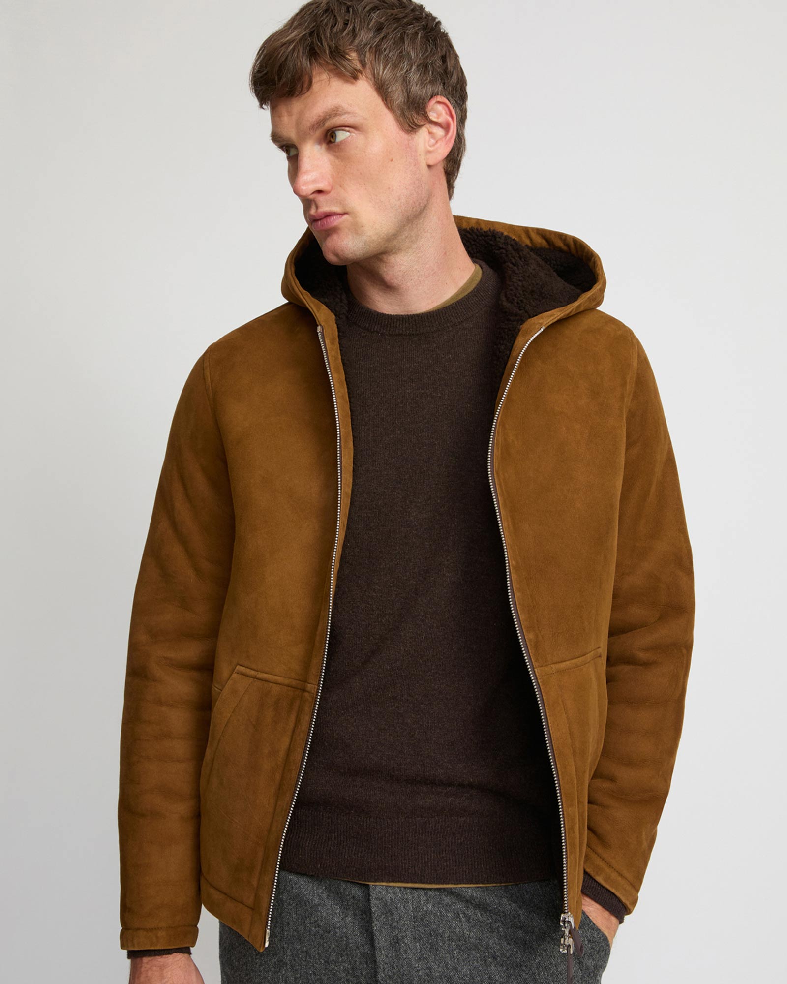 The sportswear hoodie revisited in a soft, luxurious and warm texture. Curly Merino shearling offers its thickness and softness for a classic design with a zip front and large side pockets, which feature the soft nappa side of the material.
