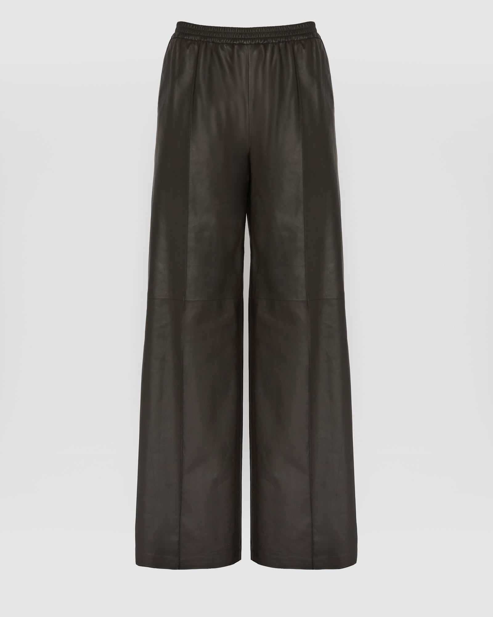 The softness of supple lambskin is ideal for this rework of the track pant, with a wider cut and an elasticated waist for supreme comfort, matched with a sophisticated style.