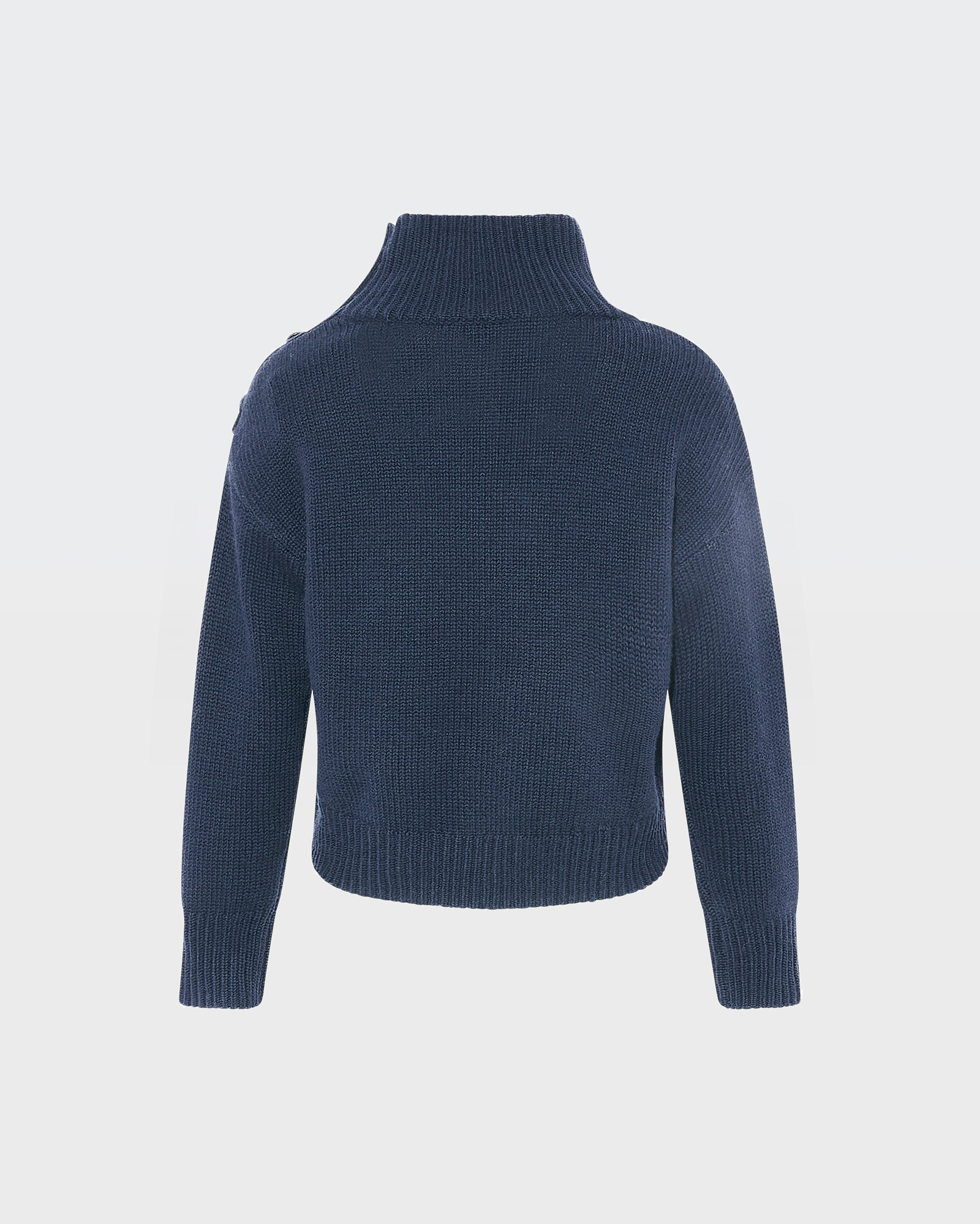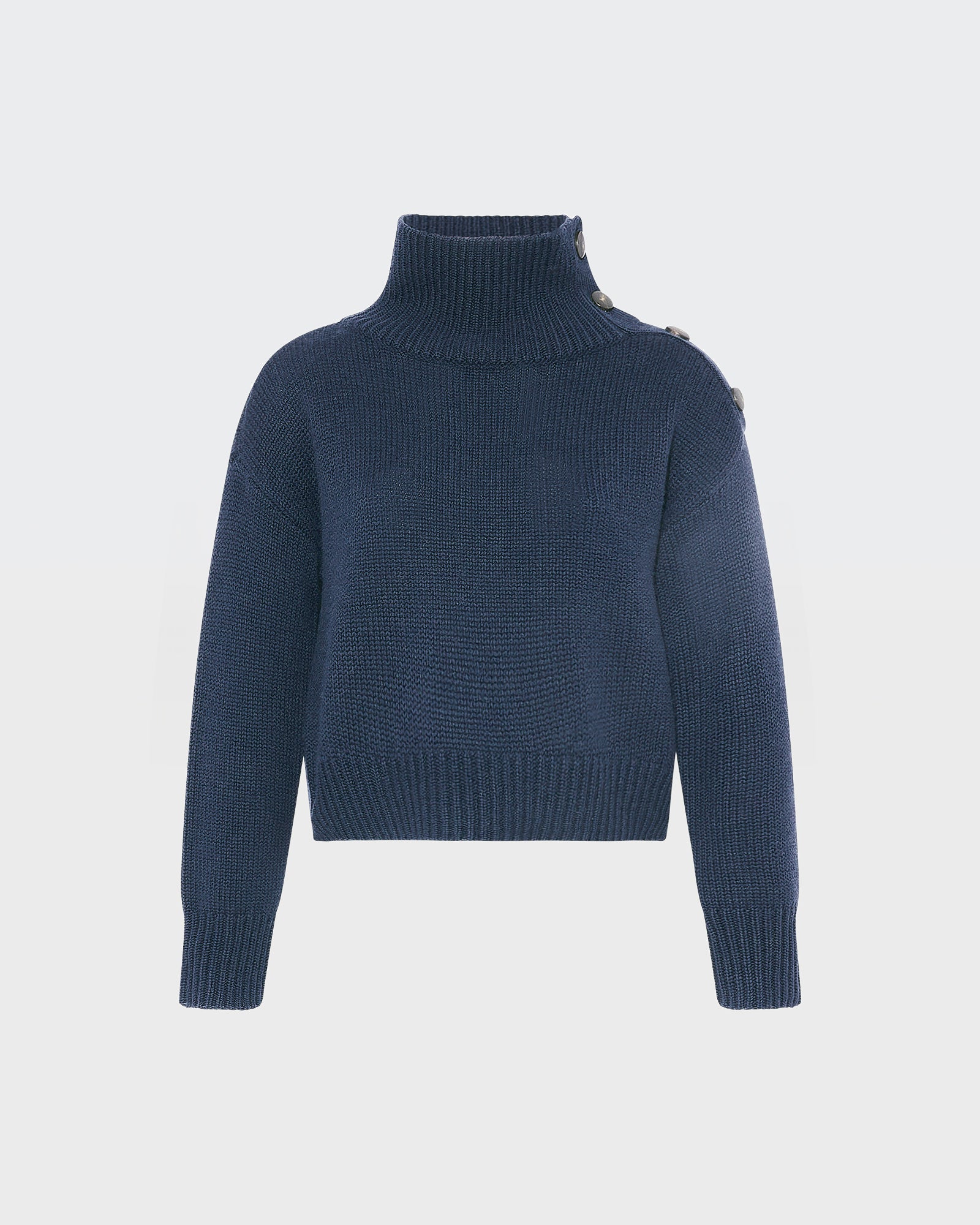 A slightly oversized shape and a buttoned funnel neck for this cropped sweater, knitted in a generous wool and cashmere mix.