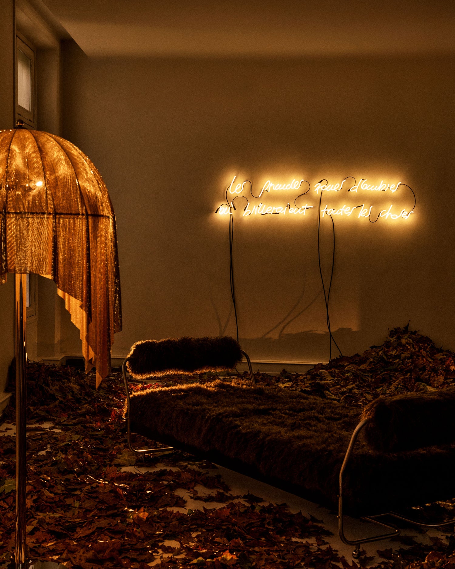 À l’occasion de Design Miami/Art Basel Paris, Yves Salomon Éditions présente dans son showroom parisien une nouvelle installation conçue en collaboration avec Dimorestudio. Intitulée« Un Souffle de Vent », cette mise en scène immersive poursuit le dialogue créatif entre les deux maisons, dévoilant les nouvelles pièces de la collection tout en réintégrant les créations présentées lors du Salone del Mobile à Milan. Inspirée par l’œuvre Les Choses de Georges Perec, l’installation imaginée par Dimorestudio plonge les visiteurs dans une atmosphère poétique où impermanence et mémoire se rencontrent. Comme l’écrit Perec :« Tout serait brun, ocre, fauve, jaune : un univers de couleurs un peu passées, aux tons soigneusement, presque précieusement dosés, au milieu desquels surprendraient quelques taches plus claires, l’orange presque criard d’un coussin, quelques volumes bariolés perdus dans les reliures. En plein jour, la lumière, entrant à flots, rendrait cette pièce un peu triste, malgré les roses. Ce serait une pièce du soir. Alors, l’hiver, rideaux tirés, avec quelques points de lumière–le coin des bibliothèques, la discothèque, le secrétaire, la table basse entre les deux canapés, les vagues reflets dans le miroir–et les grandes zones d’ombres où brilleraient toutes les choses, le bois poli, la soie lourde et riche, le cristal taillé, le cuir assoupli, elle serait havre de paix, terre de bonheur.»