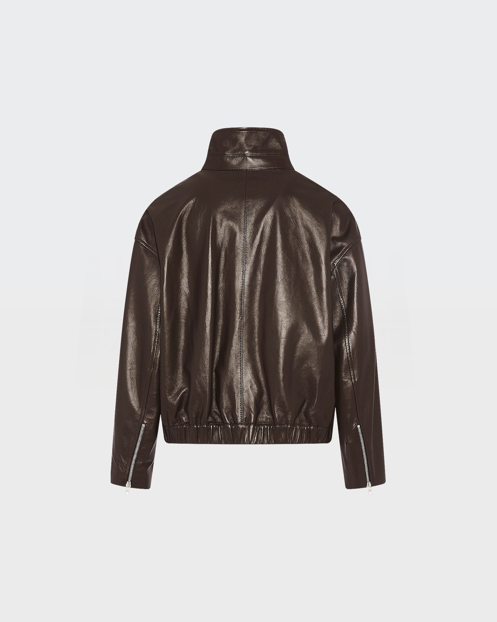 Le cuir d'agneau souple met en valeur les lignes d'inspiration masculine de ce blouson court au col montant. Sa forme légèrement ample et ses poches côté soulignent une attitude à la fois décontractée et intemporelle. Des pattes de serrage permettent de moduler le porté.
