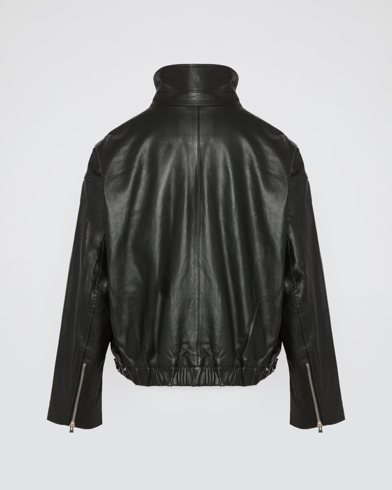 Le cuir d'agneau souple met en valeur les lignes d'inspiration masculine de ce blouson court au col montant. Sa forme légèrement ample et ses poches côté soulignent une attitude à la fois décontractée et intemporelle. Des pattes de serrage permettent de moduler le porté.