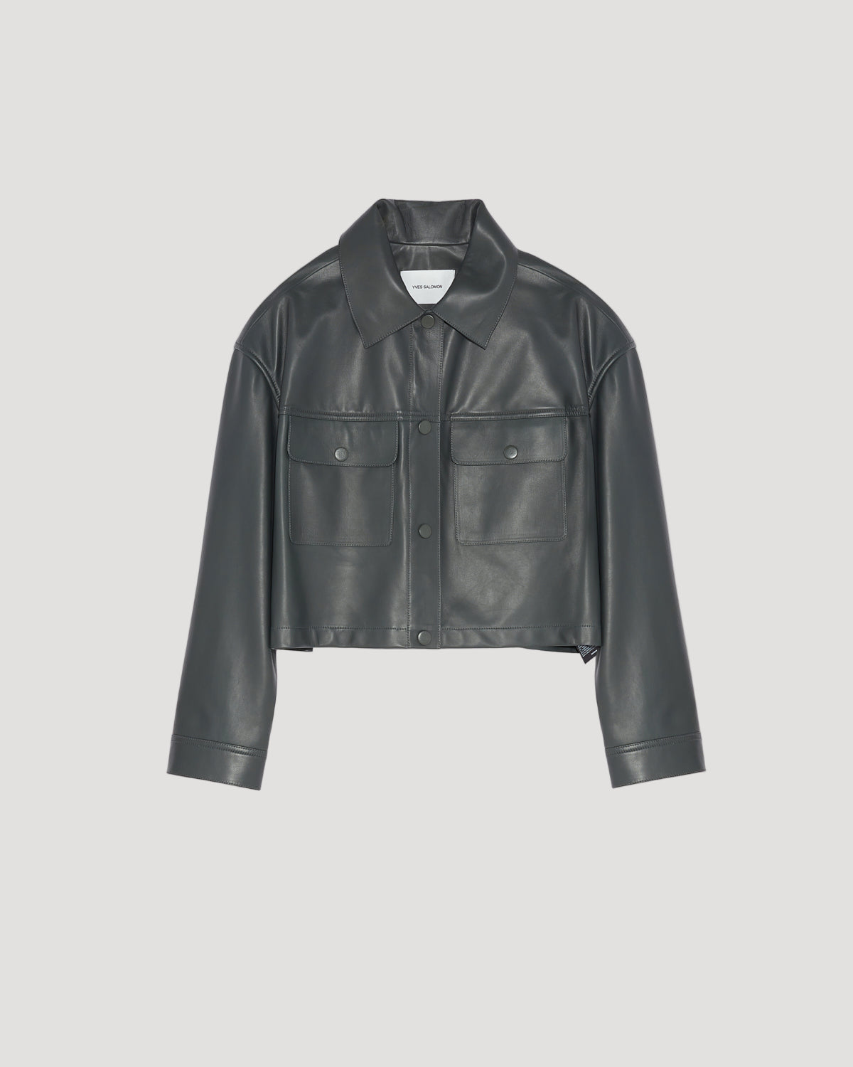 Conçue avec une silhouette oversize, cette chemise affiche un style moderne et intemporel. Le cuir d’agneau souple et léger contraste avec la coupe ultra-rigoureuse et apporte une touche d’élégance. Doté de poches plaquées à rabat, de détails surpiqués et d’une fermeture par boutons pression recouverts de cuir, ce modèle allie le confort avec une allure féminine et résolument contemporaine.