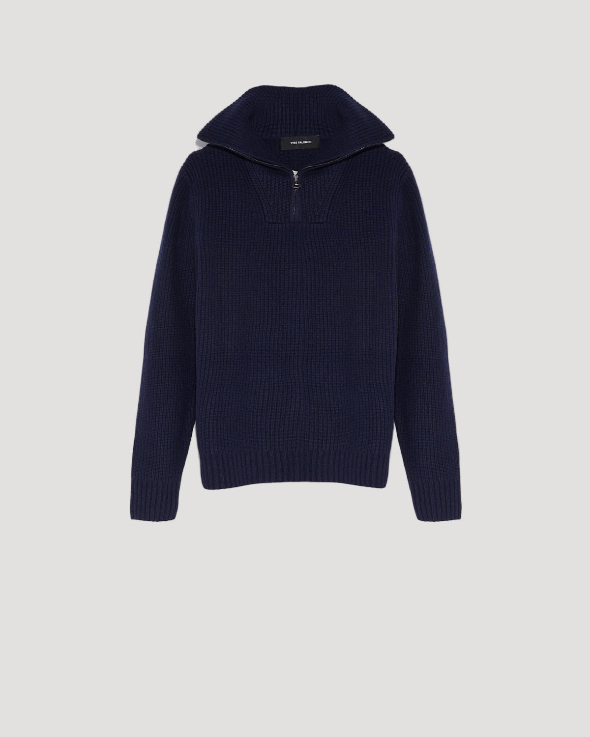 Avec sa maille en lainage cachemire à côtes, sa forme généreuse et son col zippé façon camionneur, ce pull vient se superposer sur une chemise ou un t-shirt pour affronter avec style le climat hivernal.