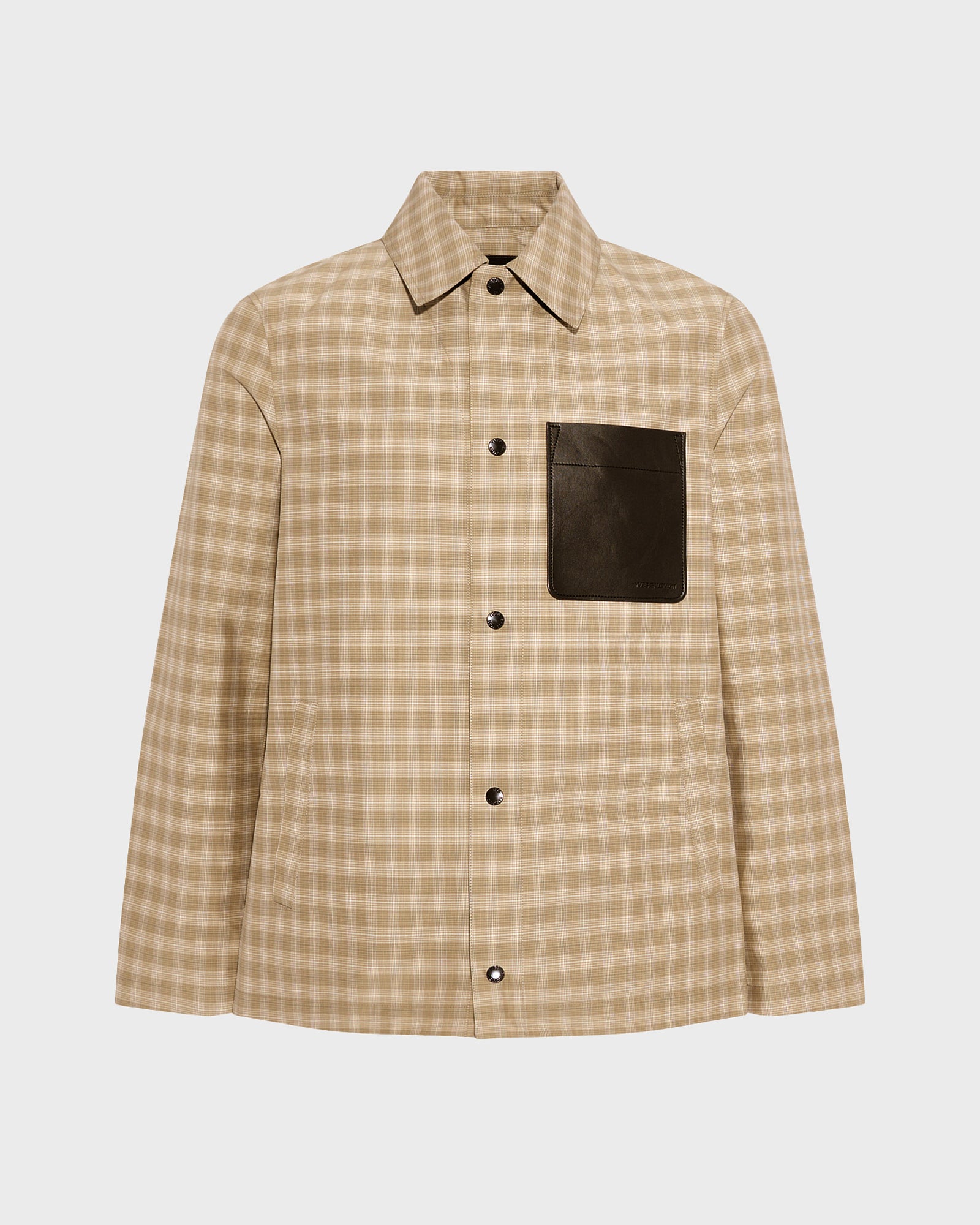 À glisser sur un t-shirt ou un pull, cette surchemise associe élégance et fonctionnalité, avec son tissu double face bicolore, traité avec une finition déperlante. La matière à imprimé carreaux est associée à du cuir d'agneau, dont une poche plaquée poitrine et une grille intérieure.